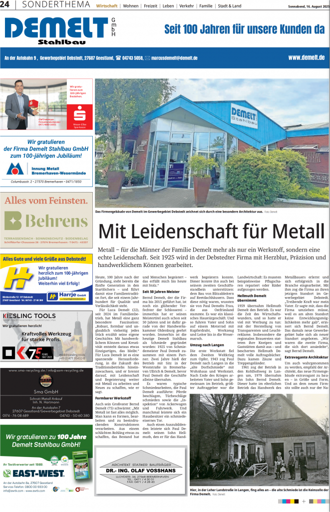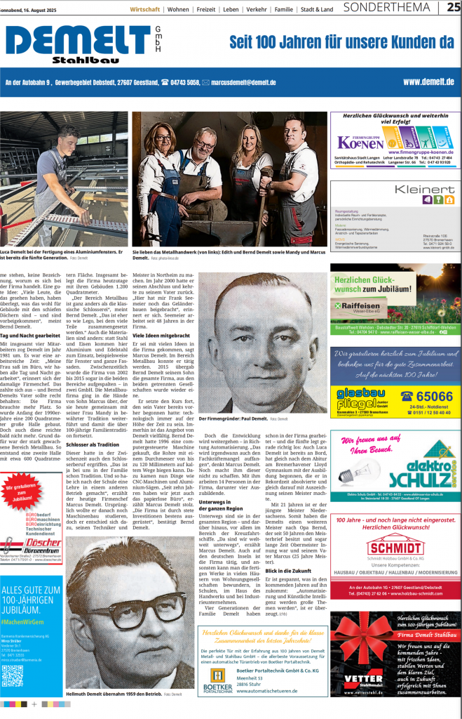 Im Jahr 2025 feiern wir ein ganz besonderes Ereignis: 100 Jahre Demelt Stahlbau GmbH.
